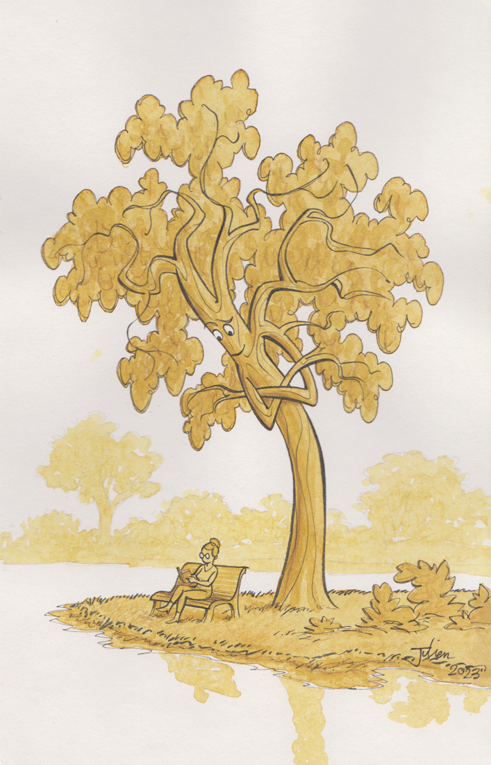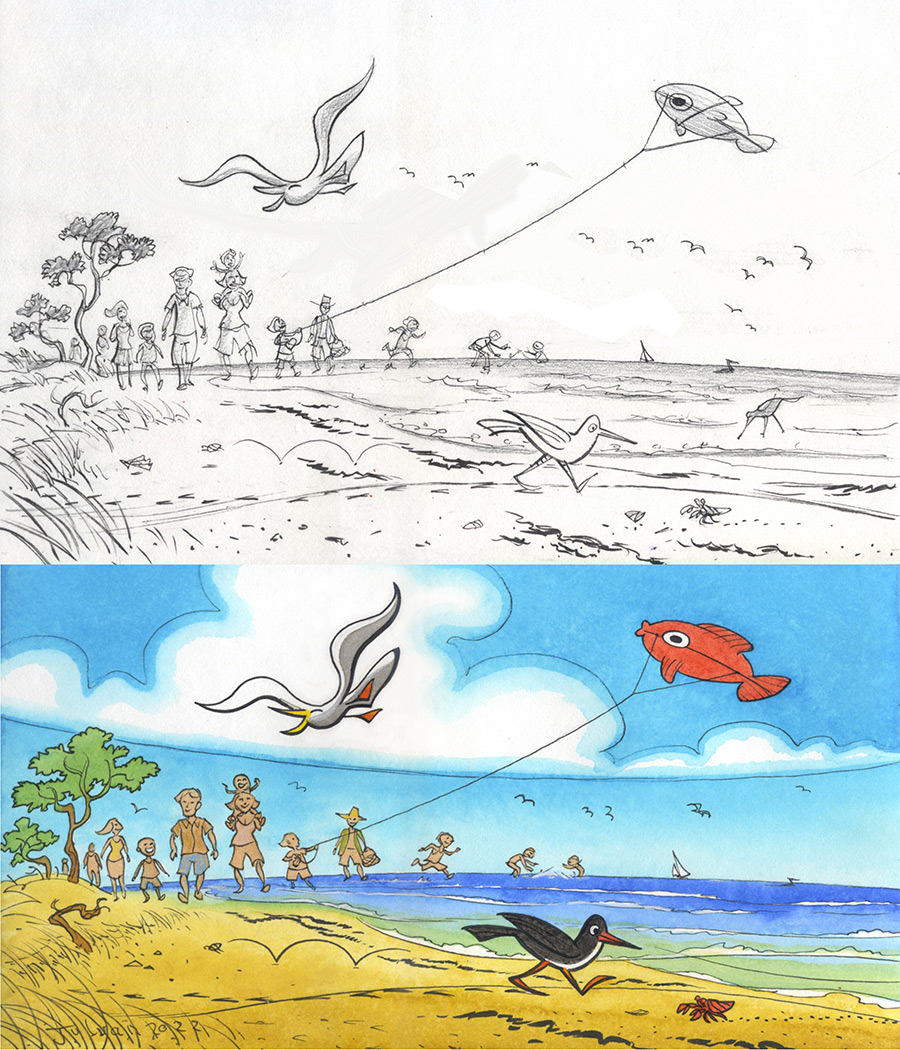 C’est arrivé à cette étape, après avoir affiné et ajouté des détails, que l’on peut finaliser le dessin en repassant les traits à l’encre (stylo, feutre, plume, pinceau...) ; au risque cependant de perdre la spontanéité du crayonné !