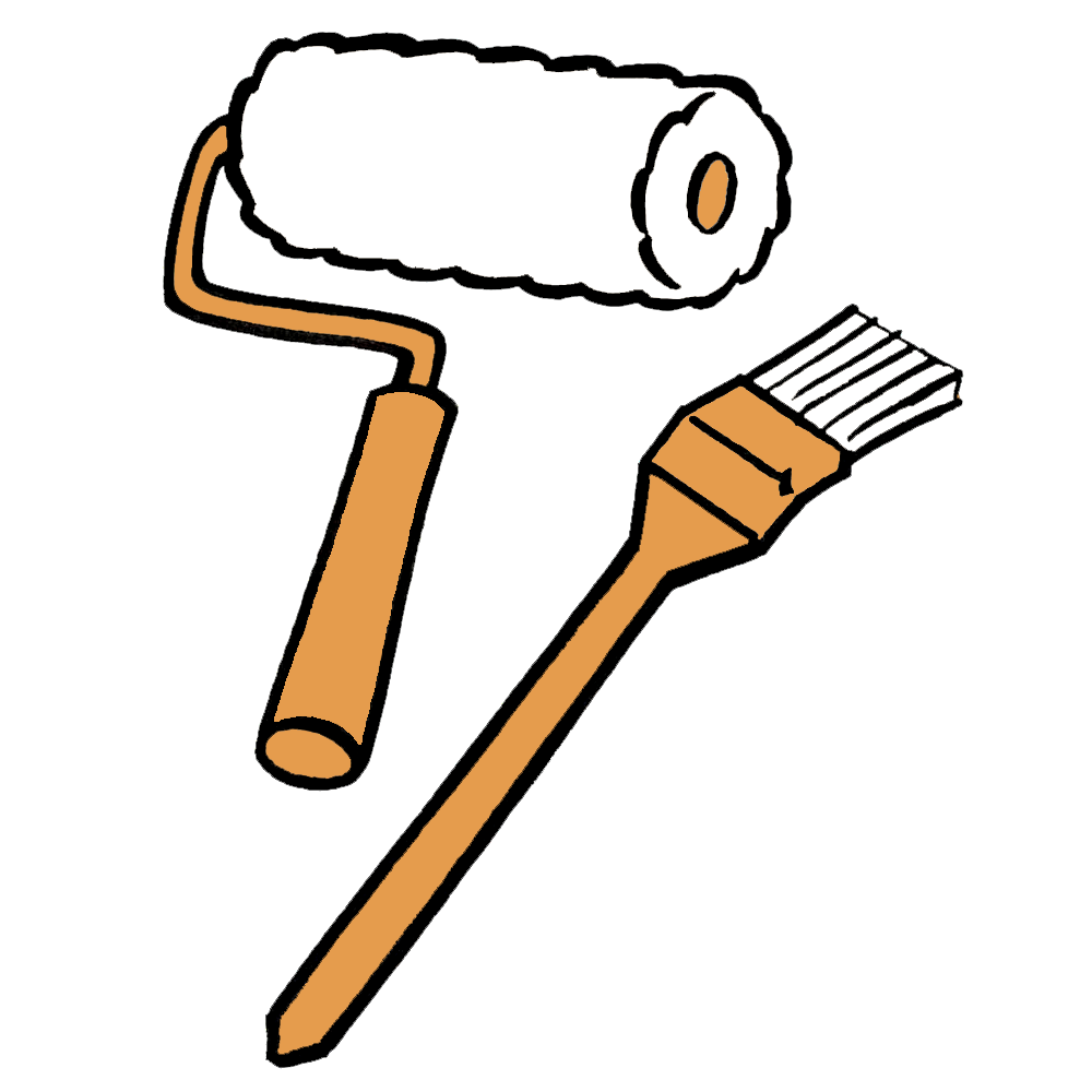 J'accorde une attention particulière à la préparation des mélanges pour chaque couleur. Mes outils sont ceux du peintre en bâtiment : rouleaux, brosses diverses, pinceaux, éponge, lames à enduire et couteau à peindre.