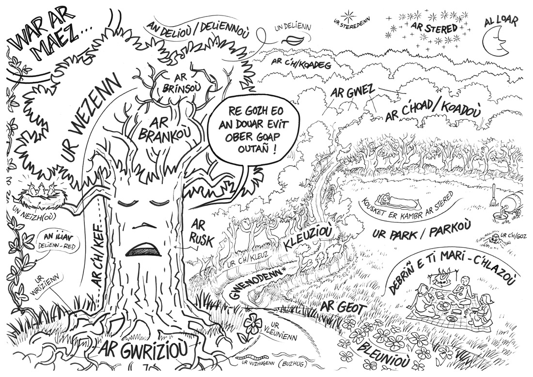 Le dessin peut rester en gris, en noir et blanc ou être rehaussé de couleurs à l’aquarelle, aux crayons, feutre, pastels secs... ou être retravaillé à l’ordinateur.